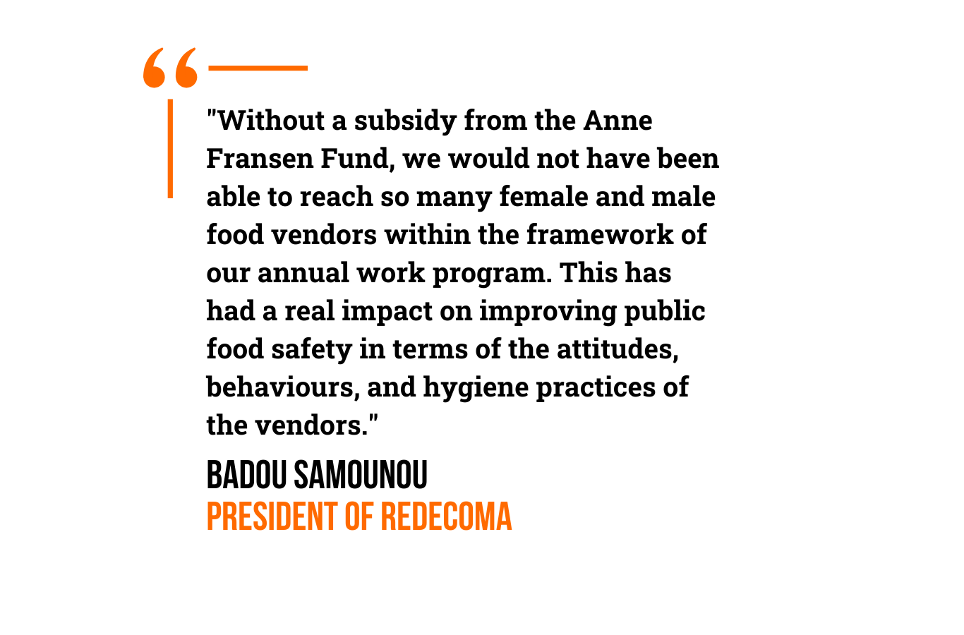 In 2024, REDECOMA, in Mali, received a grant to inform, raise awareness, and educate consumers and street food vendors about food safety and hygiene.