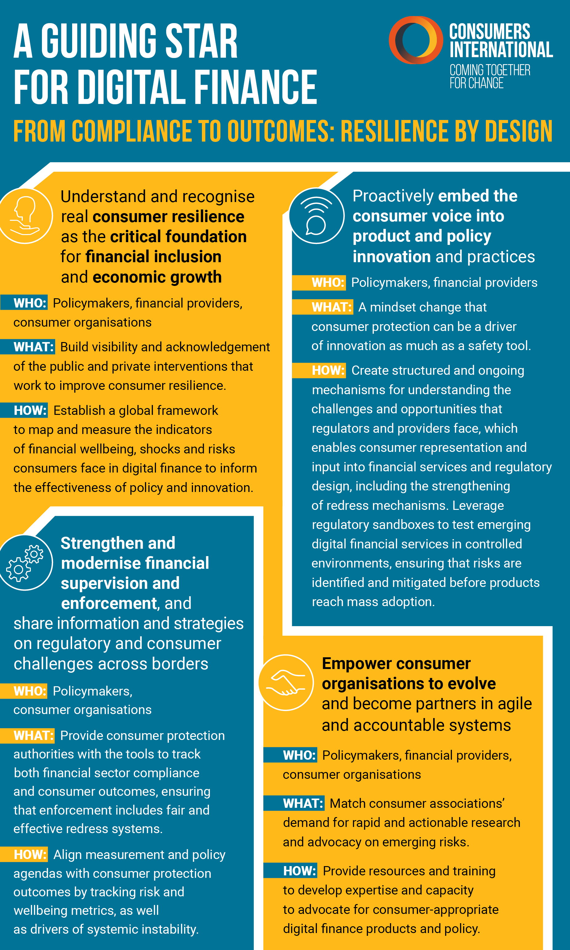 - Proactively embedding the consumer voice into product and policy innovation and practices.